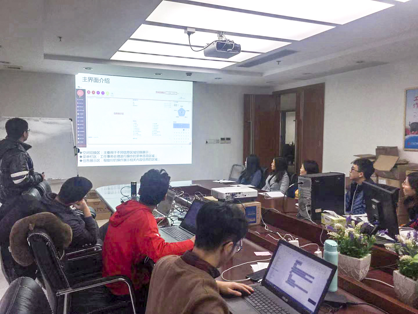 培訓中,技術員詳細介紹了協同辦公系統用戶操作技能,現場演示了工作處理單的操作流程。培訓人員認真聽講,并就協同辦公系統操作事項與技術員展開了溝通與交流。